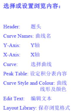這里已經(jīng)選擇了一個(gè)純化文件,打開后,在結(jié)果瀏覽窗口點(diǎn)擊鼠標(biāo)右鍵,選擇properties,可以彈出如Fig 21所示的操作菜單,可以分別對(duì)結(jié)果進(jìn)行編輯,如改變曲線的顏色,設(shè)定橫軸或縱軸的顯示區(qū)間,進(jìn)行文本文件的編輯等等。